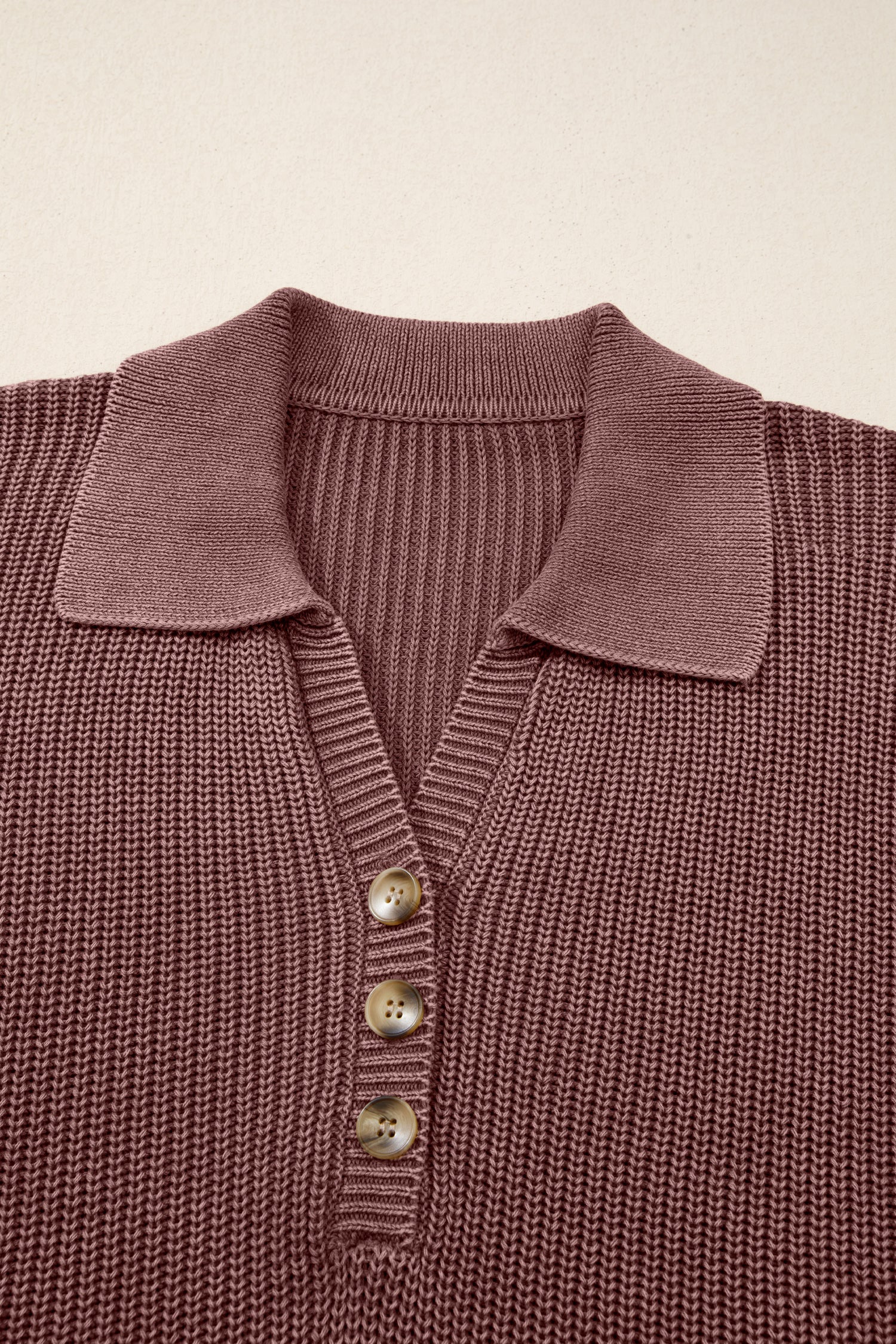 Dark Brown Mineral Washed Knit Button Polo Collar Loose Sweater