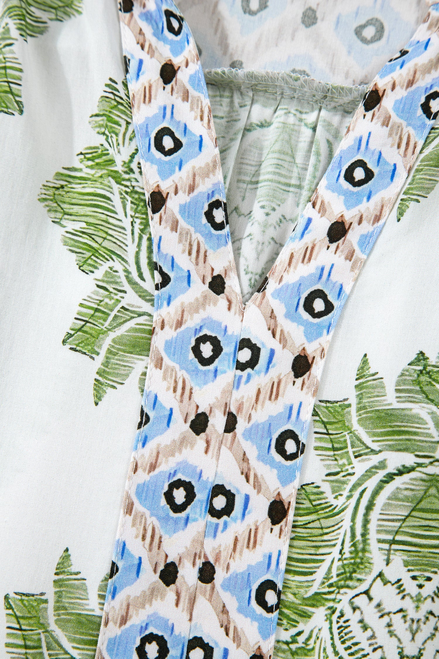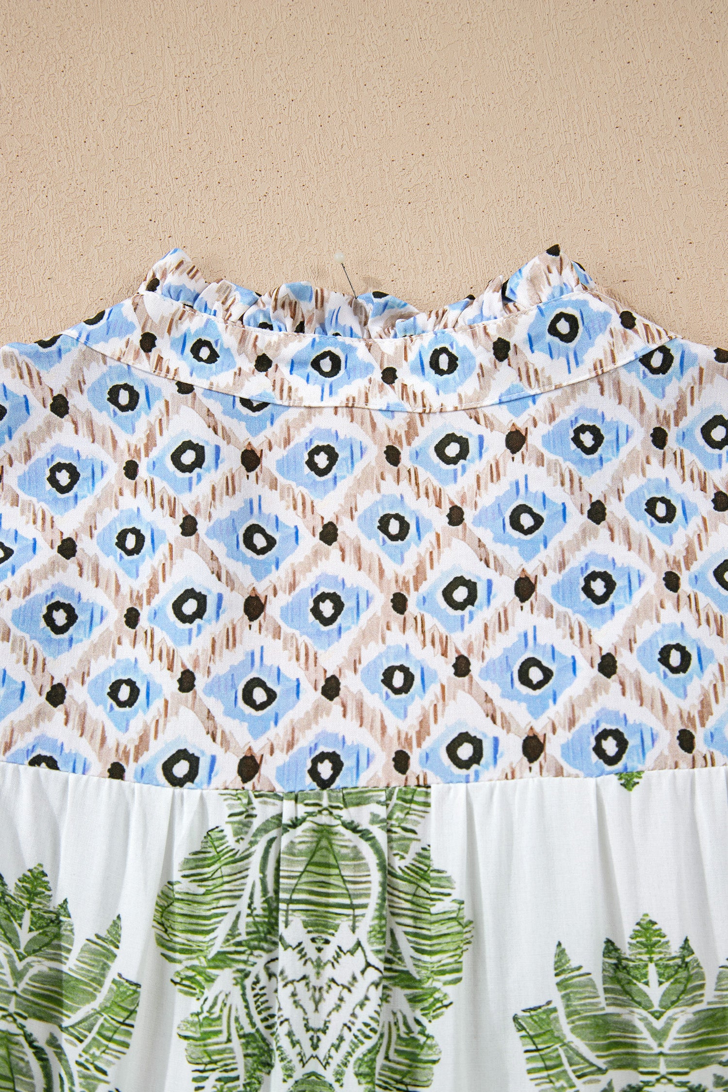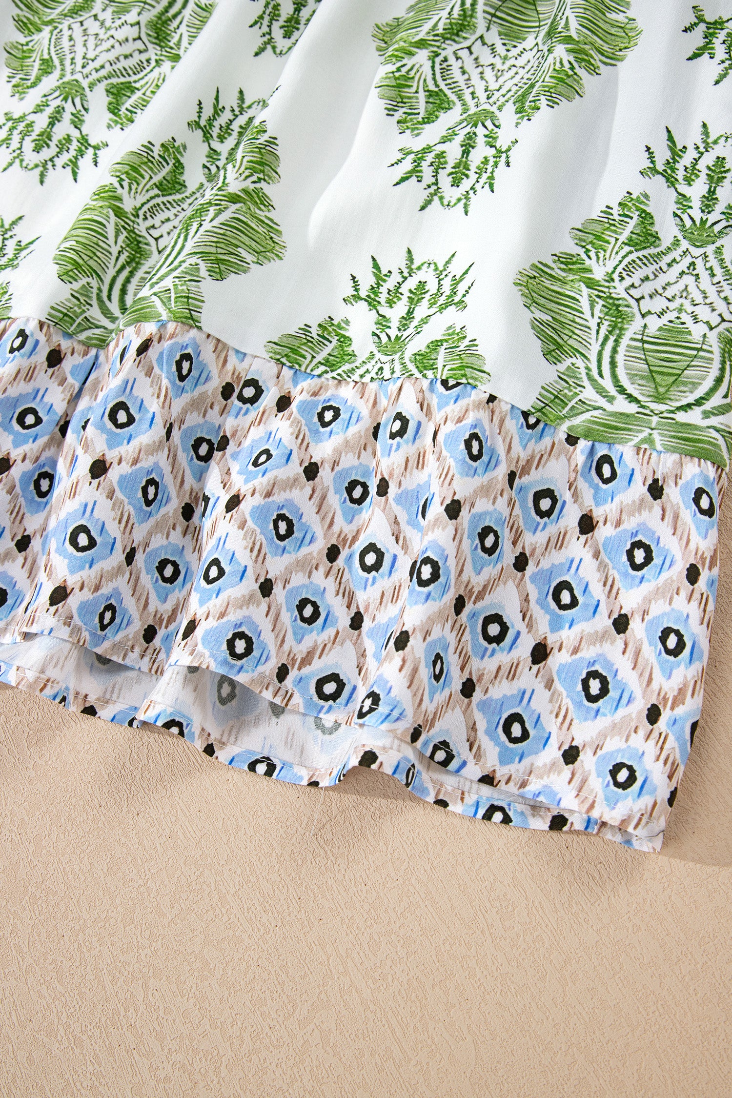 Green Floral Print Contrast Patchwork Ruffle Detail Mini Dress
